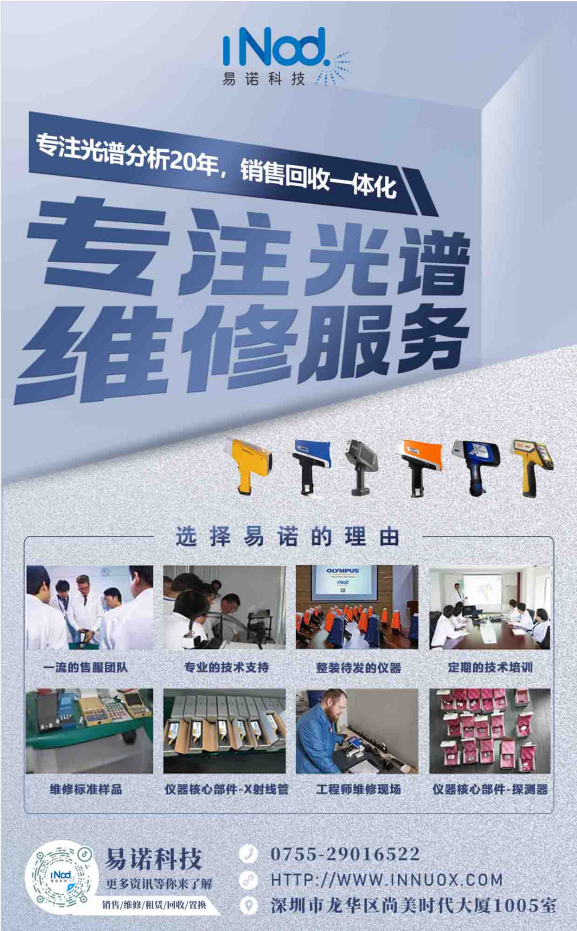 易諾科技深耕光譜行業20年,銷售維修一體化,擁有專業的維修技術人員和貼心的服務宗旨。專業解決處理死機、黑屏、零件更換、屏幕碎裂、系統升級等,讓儀器完好運轉,為國內廣大擁有手持光譜儀群體提供長期光譜儀維修服務,多年來深得客戶的好評!我司配件配備充足、交貨迅速、質量優越,外地客戶維修光譜儀可通過物流郵寄儀器到公司,性價比高!